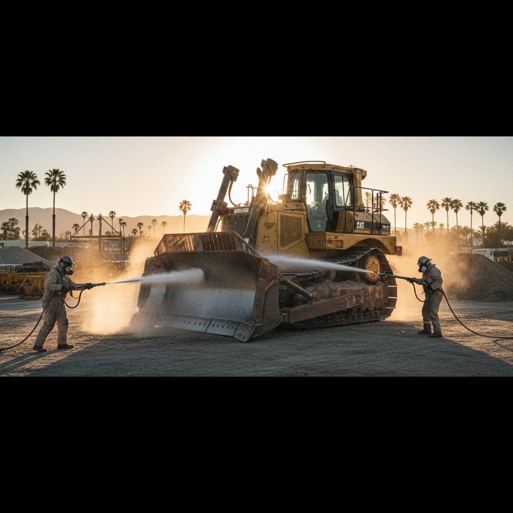 No. We're fully mobile across Southern California. We blast bulldozers, excavators, and trucks at your yard, shop, or jobsite, so you skip the transport cost and downtime.